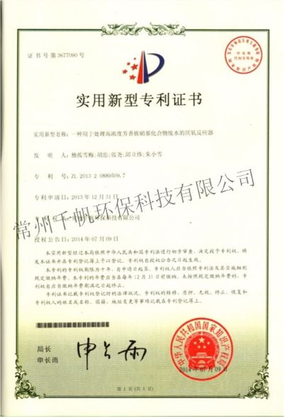 常州千帆環??萍加邢薰究偛课挥诔V菘平坛?,成立于2013年3月,是以技術研發和專業設計為先導、工程建設為主打的新型環保產業公司;環保工程設計資質、總承包資質、安全生產許可證等資質齊全。公司2017年被評定為國家高新技術企業,也是上海股權交易中心掛牌企業(企業代碼203109),公司在環保領域技術力量雄厚。公司下設常州千帆環境工程設計院有限公司,并和常州大學共建一座環境工程實驗室,和中國科學院成都化學研究所、南京理工大學、常州大學、江南大學等高校保持長期的產學研合作。經過6年的發展,公司在常州及周邊地區完成了近500家“三廢”處理工程,在廢物治理領域具備了成熟的技術條件、積累了豐富的工程經驗。